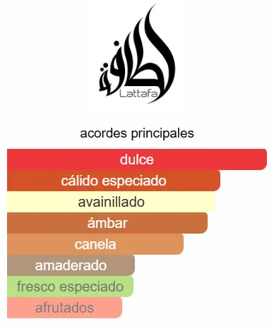 Khamrah de Lattafa Perfumes es una fragancia de la familia olfativa Oriental Especiada para Hombres y Mujeres. Las Notas de Salida son canela, nuez moscada y bergamota; las Notas de Corazón son dátiles, praliné, nardos y Mahonial; las Notas de Fondo son vainilla, haba tonka, Amberwood, mirra, benjuí y Akigalawood.