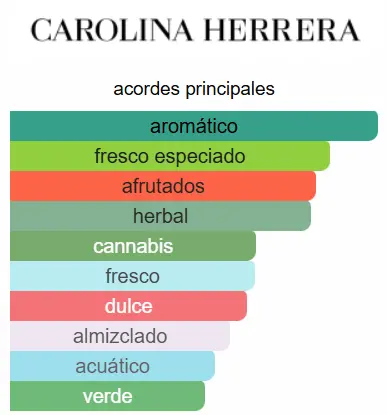 212 Heroes de Carolina Herrera es una fragancia de la familia olfativa Aromática Frutal para Hombres. Las Notas de Salida son pera, marihuana (cannabis) y jengibre; las Notas de Corazón son geranio y salvia; las Notas de Fondo son almizcle y cuero.