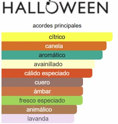 Halloween Man de Halloween es una fragancia de la familia olfativa Oriental Amaderada para Hombres. Las Notas de Salida son martini, hojas de violeta, mandarina y albahaca; las Notas de Corazón son canela, lavanda, flor de jengibre y flor de azahar del naranjo; las Notas de Fondo son vainilla, ámbar, cuero y almizcle.