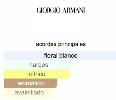 My Way de Giorgio Armani es una fragancia de la familia olfativa Floral para Mujeres. Las Notas de Salida son flor de azahar del naranjo y bergamota; las Notas de Corazón son nardos y jazmín de la India; las Notas de Fondo son vainilla de Madagascar, almizcle blanco y cedro de Virginia.