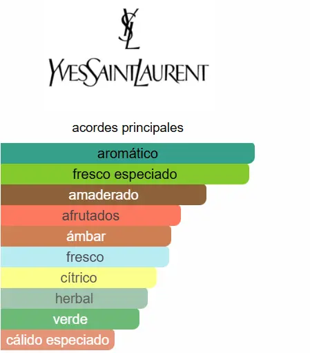 Y Eau de Parfum de Yves Saint Laurent es una fragancia de la familia olfativa Aromática Fougère para Hombres. Las Notas de Salida son manzana, jengibre y bergamota; las Notas de Corazón son salvia, bayas de enebro y geranio; las Notas de Fondo son Amberwood, haba tonka, cedro, vetiver y incienso de olíbano (franquincienso).